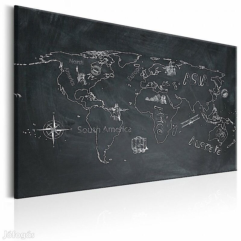 A magas minőségű "Világtérkép rajz fekete táblán" képet speciális flíz vászonra nyomtatjuk. Ez a sok, boltunkban megrendelhető eredeti minták egyike.