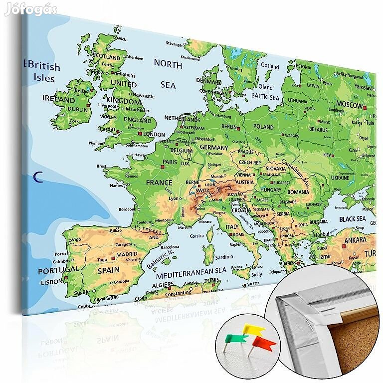 Az "Europe [Cork Map]" parafára helyezett kép a hagyományos falidíszektől jóval könnyebb. Ennek köszönhetően a parafatáblák a lakás vagy iroda bármelyik pontjában felhelyezhetők. A nyomtatott vászon egy parafatáblára kerül felhelyezésre. Ennek köszönhetően a kép színei élénkek és a legapróbb részleteket is visszaadják. Szúrj bele rajzszegeket vagy ragassz fel megjegyzéseket és készíts egyedi falidíszt!