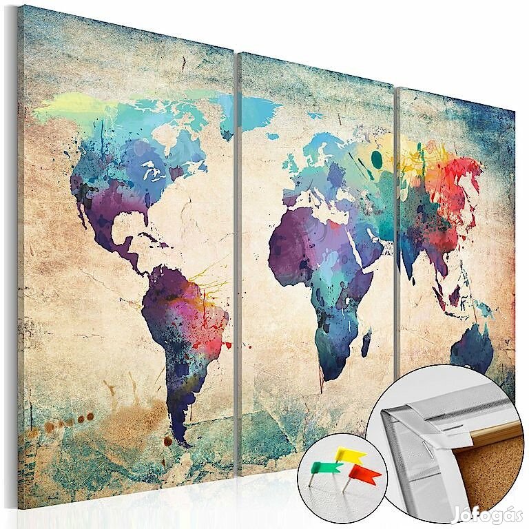 Az "Rainbow Map [Cork Map]" parafára helyezett kép a hagyományos falidíszektől jóval könnyebb. Ennek köszönhetően a parafatáblák a lakás vagy iroda bármelyik pontjában felhelyezhetők. A nyomtatott vászon egy parafatáblára kerül felhelyezésre. Ennek köszönhetően a kép színei élénkek és a legapróbb részleteket is visszaadják. Szúrj bele rajzszegeket vagy ragassz fel megjegyzéseket és készíts egyedi falidíszt!