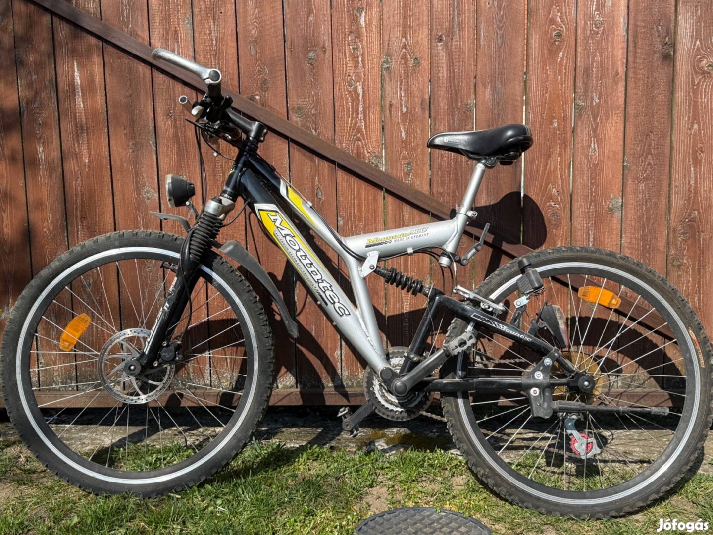 Kihasználatlanság miatt eladó a képeken szereplő kerékpár . Elöl tárcsa hátul patkó fékes , teleszkópos 21 sebességes shimano váltós . Csak személyes átvétel !