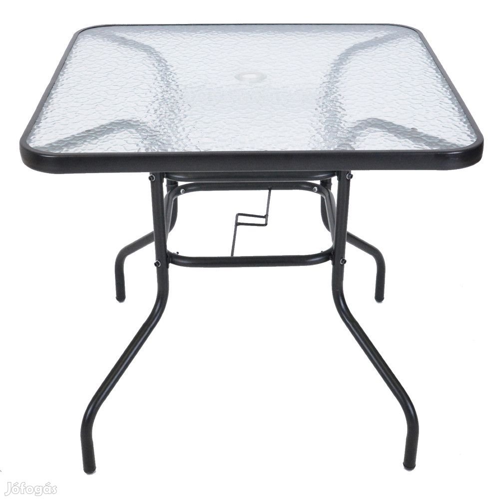 Tartós fém kerti asztal edzett üveglappal, amely 5 mm-es.