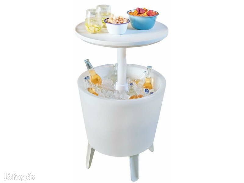 A multifunkcionális kerti bár, amely összecsukva praktikus asztalként, kihúzva pedig klasszikus bárként szolgálhat, dobozos italhűtővel.