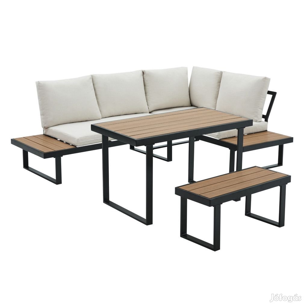 Anyag: fém/szövet/polywoodA textília kopásállósága a Martindale teszt alapján: 95 000 kopásSzín: fekete/krémszínű/tölgyMéretek (SzxMéxMa): 155/218x72x70 cm2 személyes rész méretei (SzxMéxMa): 146x72x70 cmSarok méretei (SzxMéxMa): 155x72x70 cmPad méretei (SzxMéxMa): 80x33x37 cmAsztal méretei (SzxMéxMa): 110x60x65,5 cmÜlés magassága ülőpárnával: 38 cmÜlés magassága ülőpárna nélkül: 30 cmÜlés mélysége ülőpárnával: 48 cmÜlés mélysége ülőpárna nélkül: 64 cmHáttámla magassága ülőpárnával: 45 cmAsztal teherbírása: 30 kgTeherbírás/személy: 90 kg4 részes szettSarok2 személyesPadÉtkezőasztalPraktikus tárolórekeszek az oldalakonTárolórekesz szélessége: 31 cmPárnákkal együtt szállítvaPárna vastagsága: 8 cmLevehető, vízálló huzatA huzatok 30 °C-on moshatókAz elemek igény és tér szerint variálhatókSzétszerelve szállítva További információkért kattintson ide: