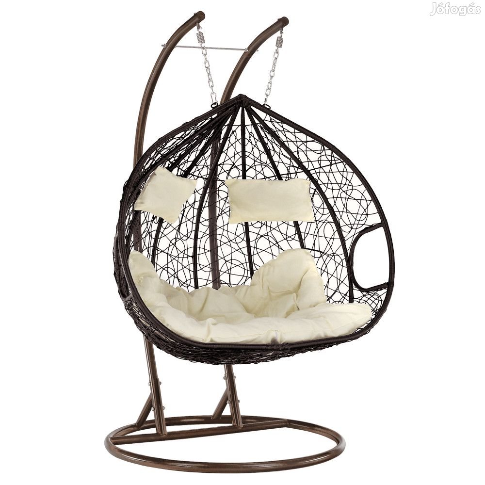 A dupla fotel alkalmas kültérre és beltérbe egyaránt. A kényelemről a puha fotelben gondoskodik a párna virág mintázattal. Az egész fotel réz és barna színváltozatban készült. Ez a kerti függőfotel egyszerűen ideális a pihenés imádói számára.