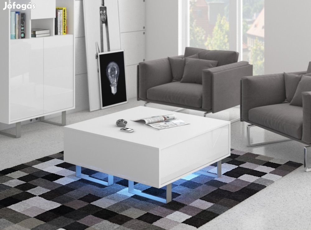 Dohányzóasztal 2 lenyíló ajtóval és négyzet alakú szögletes asztallappal, fehér és fényes fehér színben. További információkért kattintson ide:
