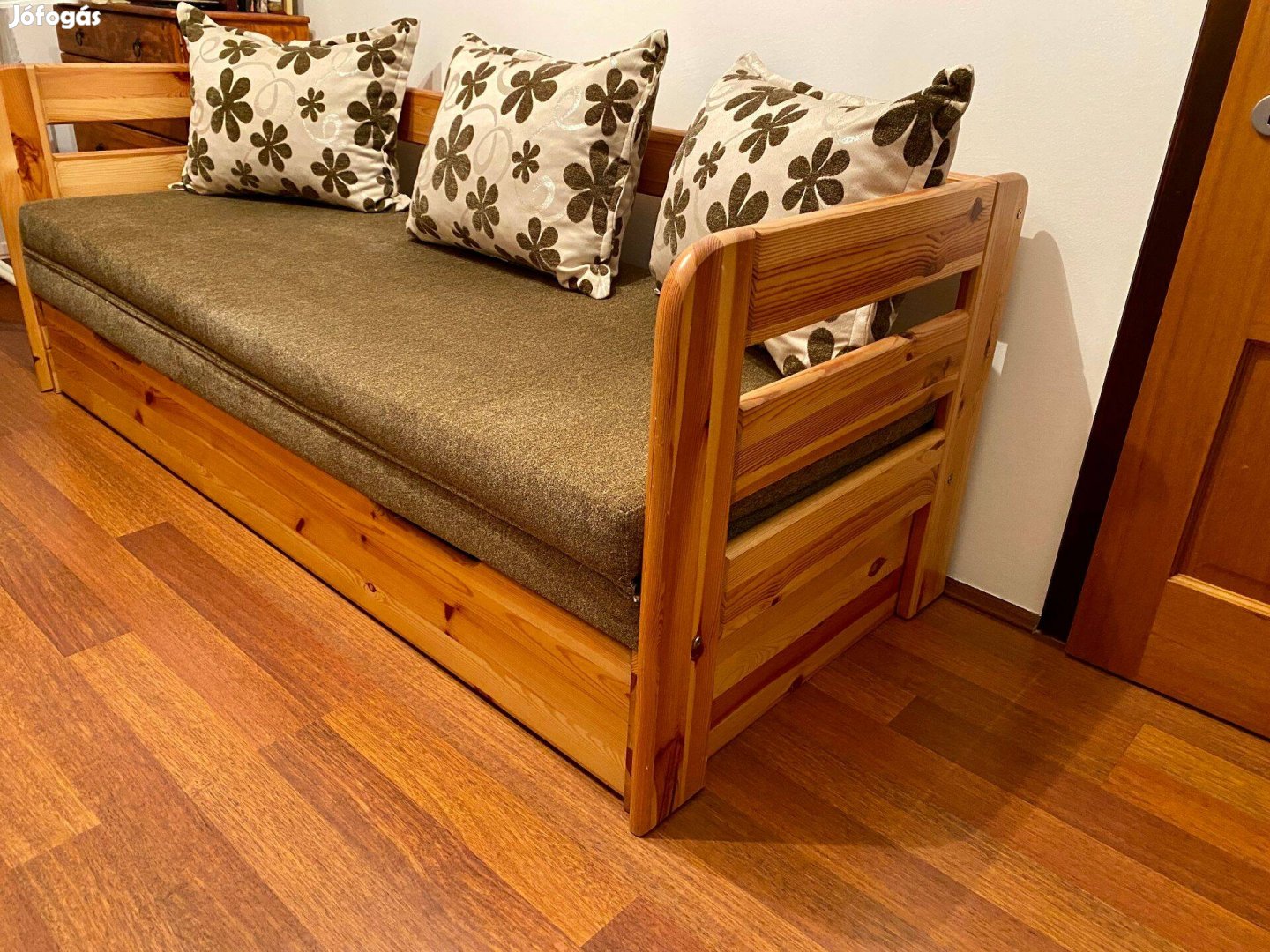 Nappali használatra kényelmes ülőfelületet biztosít, a három díszpárna tovább növeli a komfortot. Kihúzható alsó résszel rendelkezik, amelyre a matrac ráhelyezhető, így könnyedén kétszemélyes ággyá alakítható. Az alsó rész ágyneműtarolóként funkcionál.