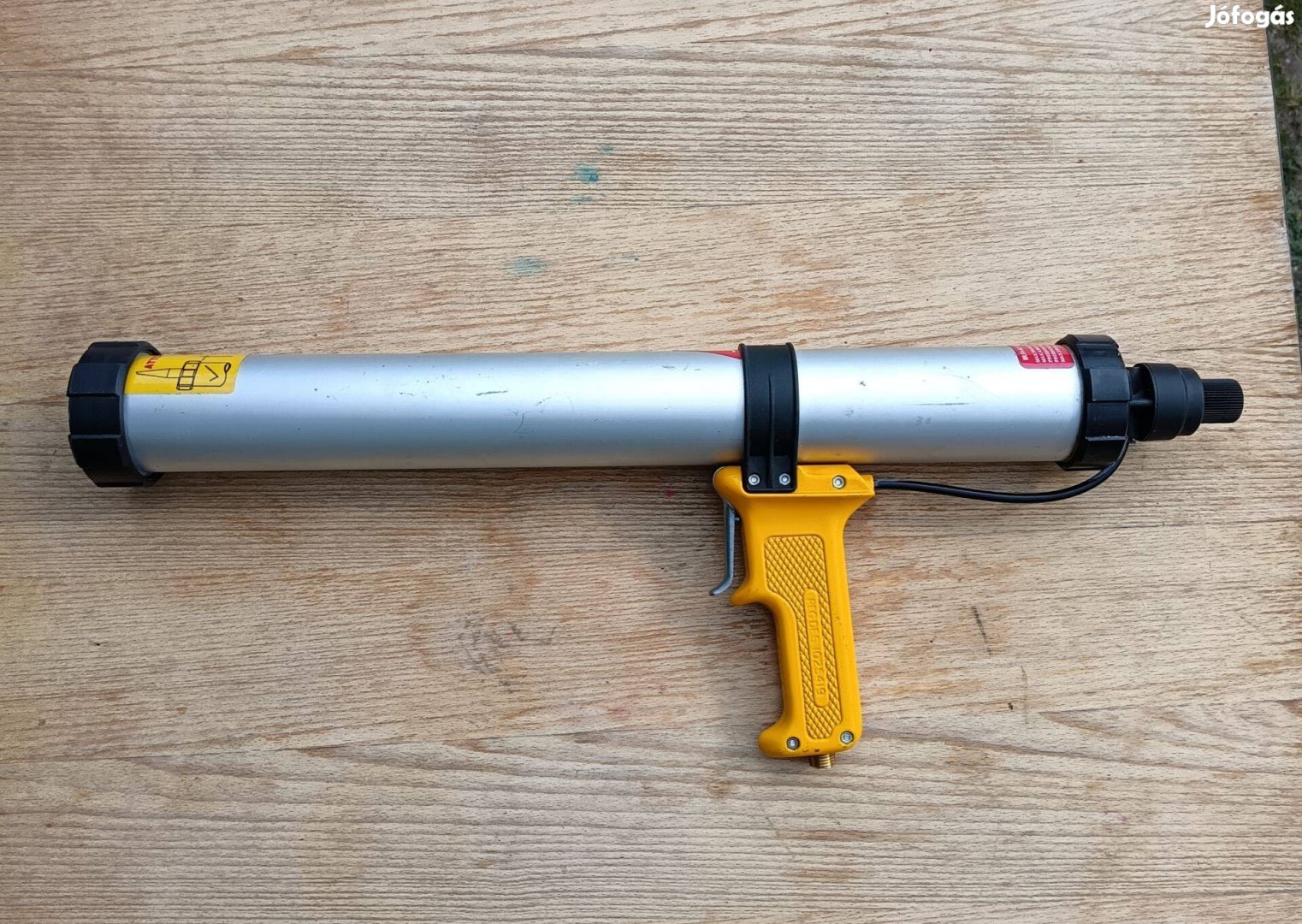 Fokozatmentesen szabályozható, dugattyús levegős kinyomópisztoly zacskós kiszerelések kinyomásához.