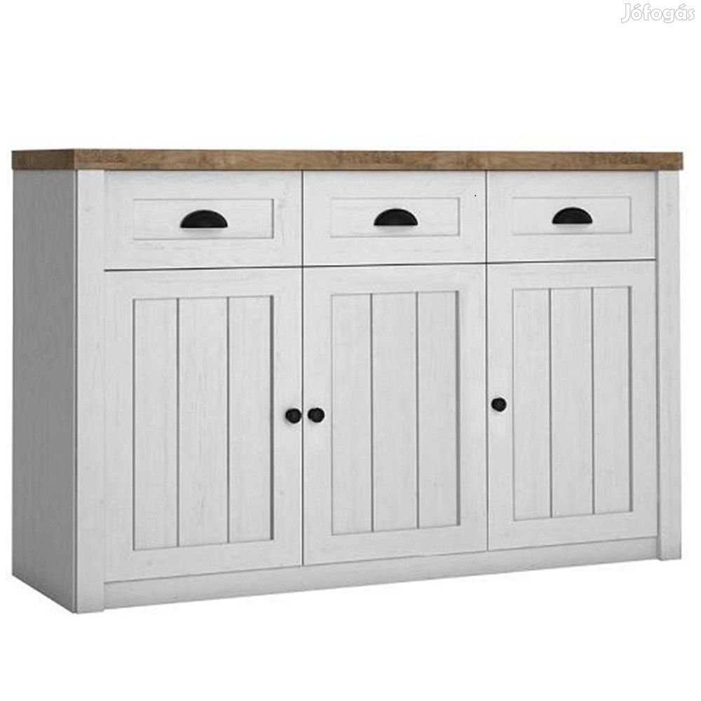 Ez a komód zárt rakodóteret biztosít. Az ajtókon eredeti fogantyúkkal. Három ajtóval és három fiókkal rendelkezik.