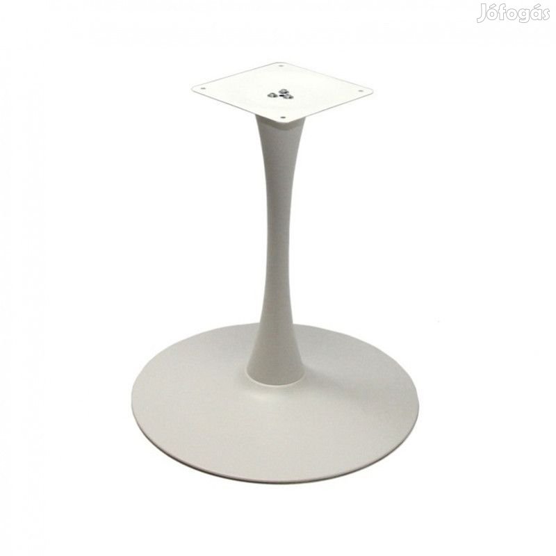 Bútorlapól készült, kör alakú, fix fa asztallapos étkezőasztal fém tartólábbal.