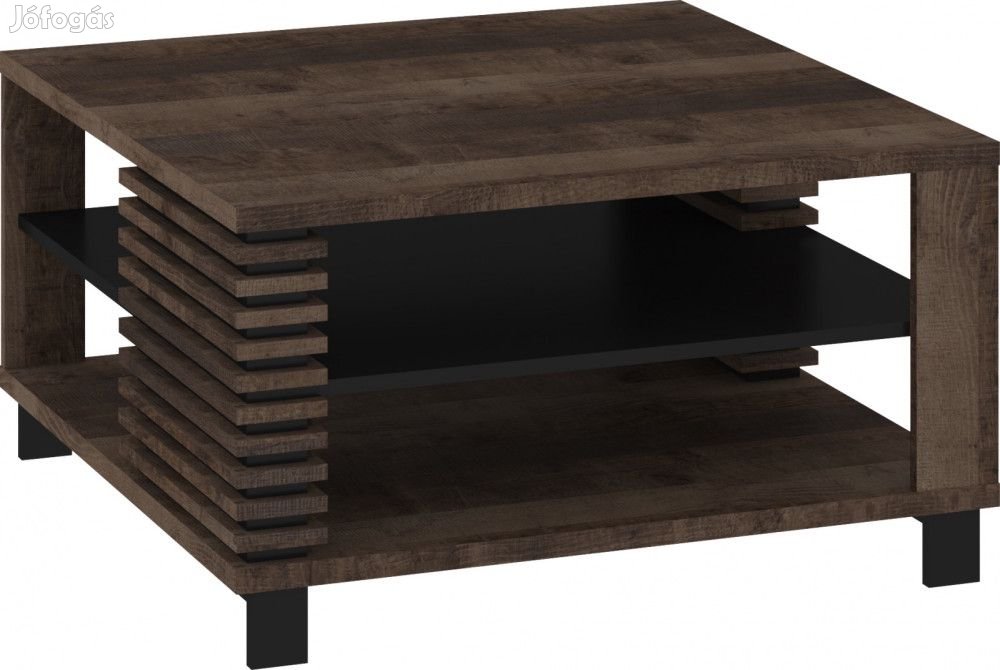 Dohányzóasztal nyitott polcokkal és négyzet alakú szögletes asztallappal, grange tölgy és fekete színben. További információkért kattintson ide: