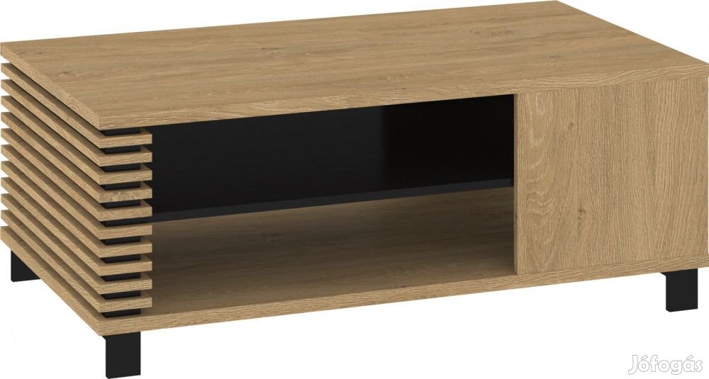 Dohányzóasztal nyitott polcokkal és téglalap alakú szögletes asztallappal, stone tölgy és fekete színben. További információkért kattintson ide: