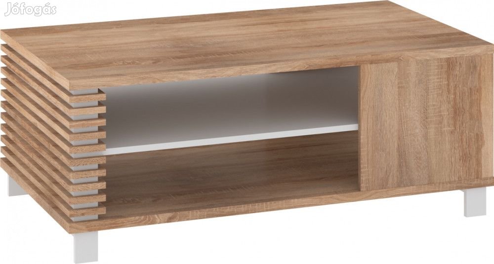 Dohányzóasztal nyitott polcokkal és téglalap alakú szögletes asztallappal, világos sonoma tölgy és fehér színben. További információkért kattintson ide: