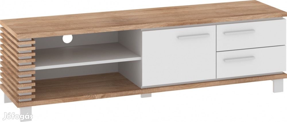 TV-állvány 1 ajtóval, 2 fiókkal és nyitott polcokkal, világos sonoma tölgy, fényes fehér és fehér színben. További információkért kattintson ide: