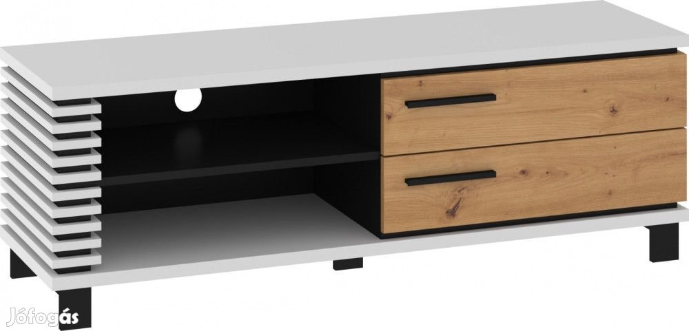TV-állvány 2 fiókkal és nyitott polcokkal, fehér, artisan tölgy és fekete színben. További információkért kattintson ide: