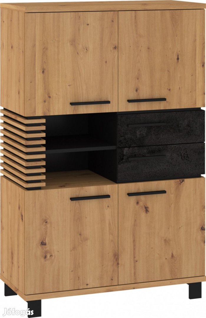 Könyvespolc 4 ajtóval, 2 fiókkal, az ajtó mögött polcokkal és nyitott polcokkal, artisan tölgy, beton fekete és fekete színben. További információkért kattintson ide: