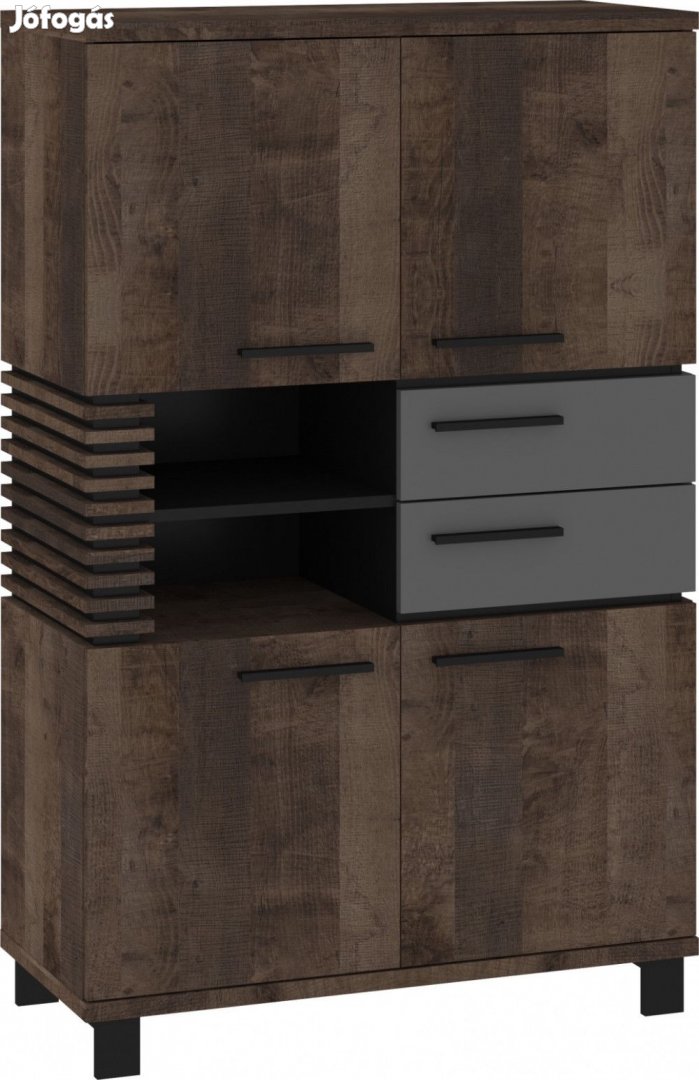 Könyvespolc 4 ajtóval, 2 fiókkal, az ajtó mögött polcokkal és nyitott polcokkal, grange tölgy, szürke és fekete színben. További információkért kattintson ide: