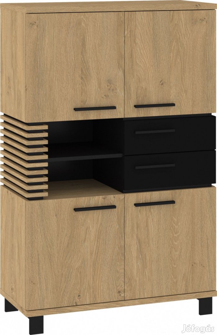 Könyvespolc 4 ajtóval, 2 fiókkal, az ajtó mögött polcokkal és nyitott polcokkal, stone tölgy, fényes fekete és fekete színben. További információkért kattintson ide: