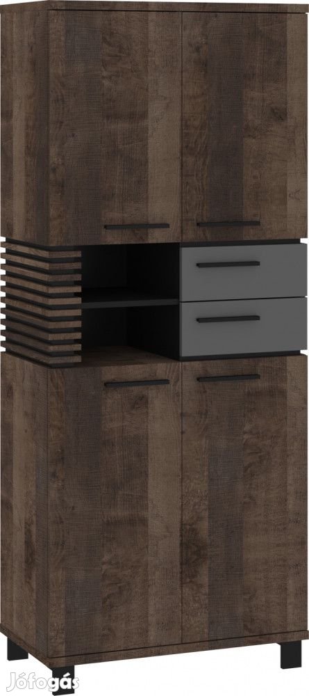 Könyvespolc 4 ajtóval, 2 fiókkal, az ajtó mögött polcokkal és nyitott polcokkal, grange tölgy, szürke és fekete színben. További információkért kattintson ide: