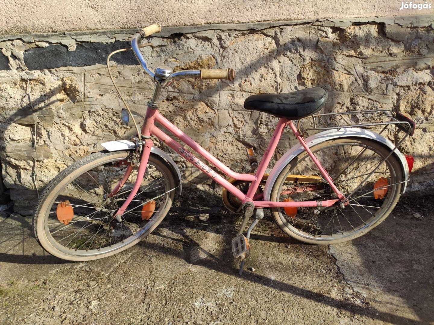Mindvégig garázsban tárolt, régóa nem használt, megkímélt állapotú, Rotary márkájú rózsaszín lányka kerékpár új tulajdonosát keresi. A bicikli dinamós, kontrás, csomagtartóval, sárhányókkal, támasztóval, küllőprizmákkal felszerelt.