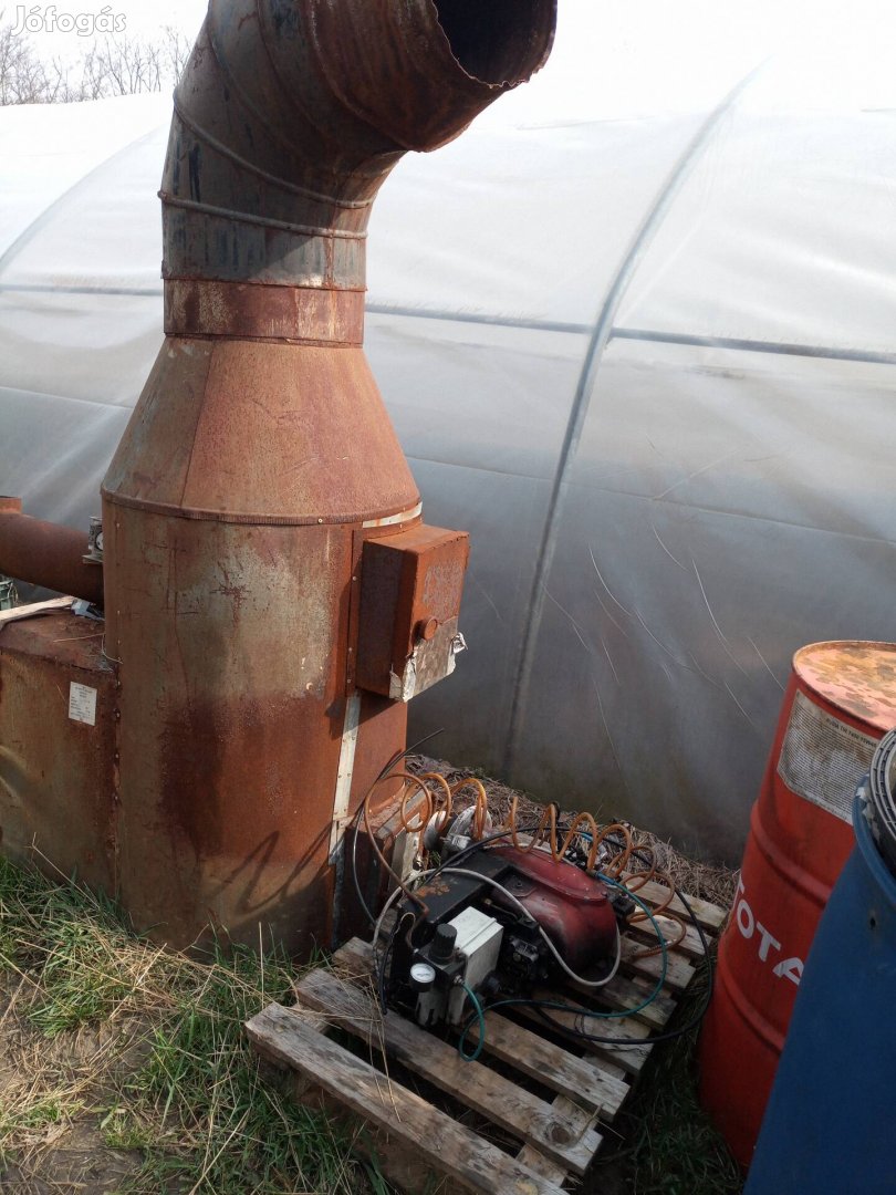 Eladó egy Ganz Tissen gyártmányú, abból átalakított légporlasztásos fáradt olaj égető. A szerkezet egy kompresszorhoz kapcsolva, teljesen autómatán működik. Szoba termosztátra kötve, a beállított hőmérsékletet tudja tartani. Van hozzá napi tartály is és igény szerint fáradt olaj tartály felhordó olaj kézi szivattyúval. Továbbá eladó egy hőlégbefúvós kazán, ami fával és ezzel az olaj égetővel is használható. Mindegyik külön külön is eladó. A kazán nyolcvan ezer forint.