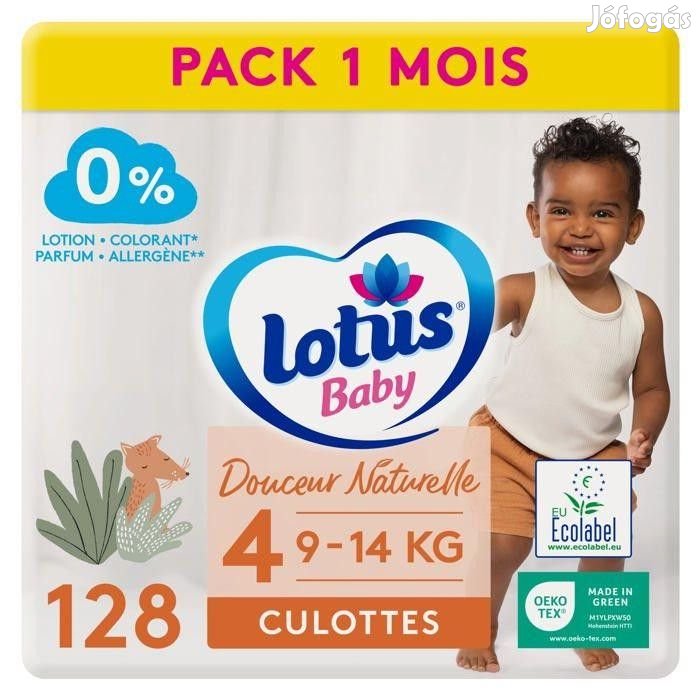 LOTUS BABY PELENKABUGYI 4-ES MÉRET (9-14 KG) 128 DB4×32dbTermészetes eredetű anyagok, cukornádból készültek, rendkívül puha és légáteresztőek.0% testápoló, parfüm, allergének és színezékek a bőrrel érintkezve. A bőrrel érintkező összes anyagot bőrgyógyászatilag tesztelik.Szivárgásgátló rendszer akár 12 órán keresztül a dupla szivárgásgátlónak és az optimális védelmet biztosító extra nedvszívó csatornákkal ellátott matracnak köszönhetően.A puha bugyi és az elasztikus derékpánt biztosítja a szabad mozgást.A Skin Heath Alliance bőrgyógyászai által jóváhagyott bugyi, Ecolabel akkreditációval és FSC tanúsítvánnyal ellátott vatelinnel töltve.Douceur Naturelle Lotus Baby pelenka, 4-es méret (9-14 kg). Annak érdekében, hogy gyermeke kíméletes védelmet kapjon, olyan anyagokat választunk, amelyek természetes eredetű, cukornád alapú, ultrapuha és légáteresztő bőrrel érintkeznek. Pelenkáink nem tartalmaznak testápolót, parfümöt, színezéket* vagy allergéneket**, a bőrrel érintkező anyagokat pedig bőrgyógyászatilag teszteljük, hogy megvédjük a baba érzékeny bőrét. Pelenkáink a Skin Health Alliance bőrgyógyászai által is tanúsítottak. A termék többféle szállítási móddal is megrendelhető, már 1290 Ft-tól.