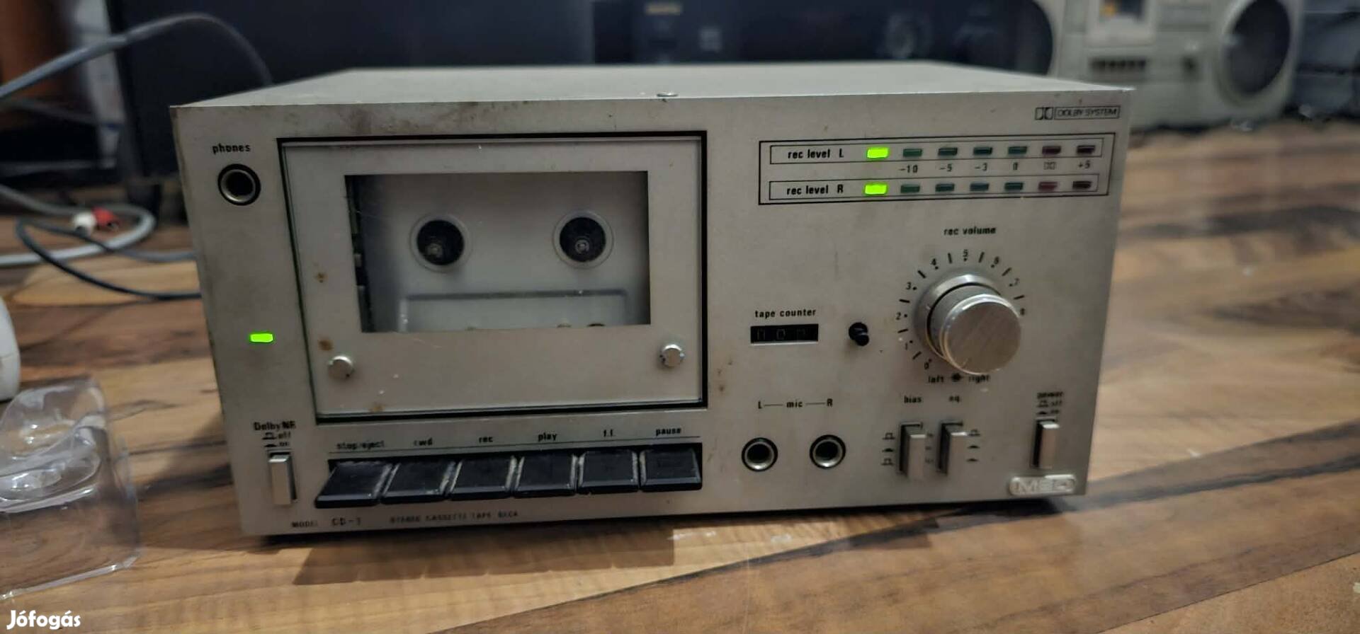 Eladó a képeken látható, klasszikus megjelenésű MBO CD-1 típusú sztereó kazettás magnódeck. A készülék bekapcsol, a visszajelző fények világítanak, a motor zúgása hallható, de a kazettát nem forgatja (valószínűleg szíjazni kell).