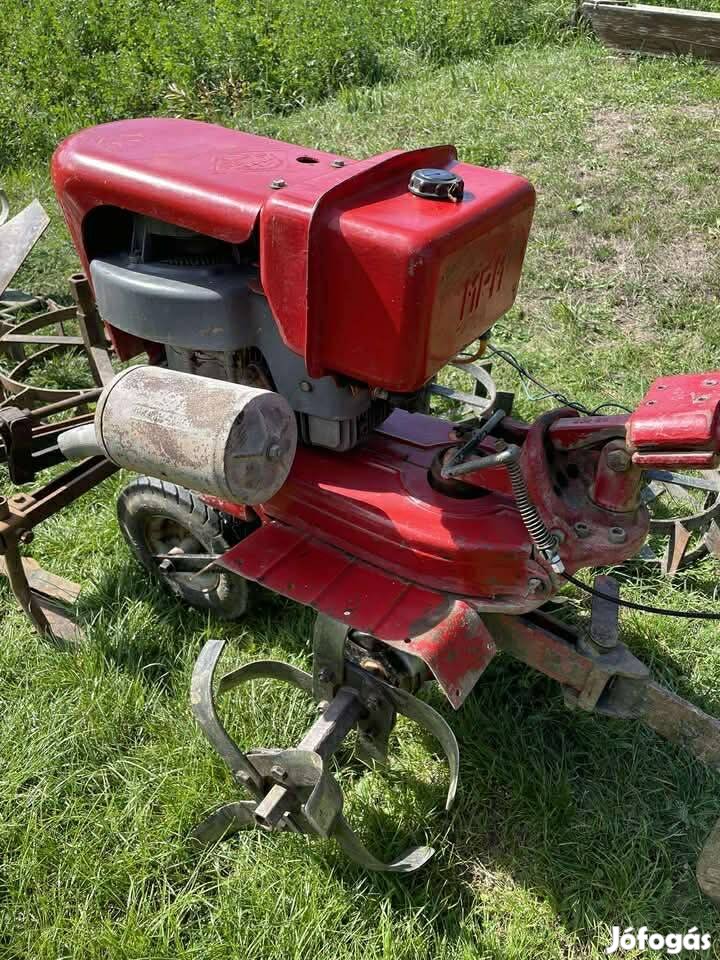 Ajka környékén eladó egy MPM-210-es, 205 köbcentis, kétütemű motoros gép. A tartozékai: kapák, körmös kerekek (kicsi, nagy), gumikerék, sorkihúzó, szántóeke, állítható sorközművelő, orrsúly és egy utánfutós rámpa. Könnyen indul, folyamatosan karbantartott és jó állapotban van. Csak egyben kínálom.