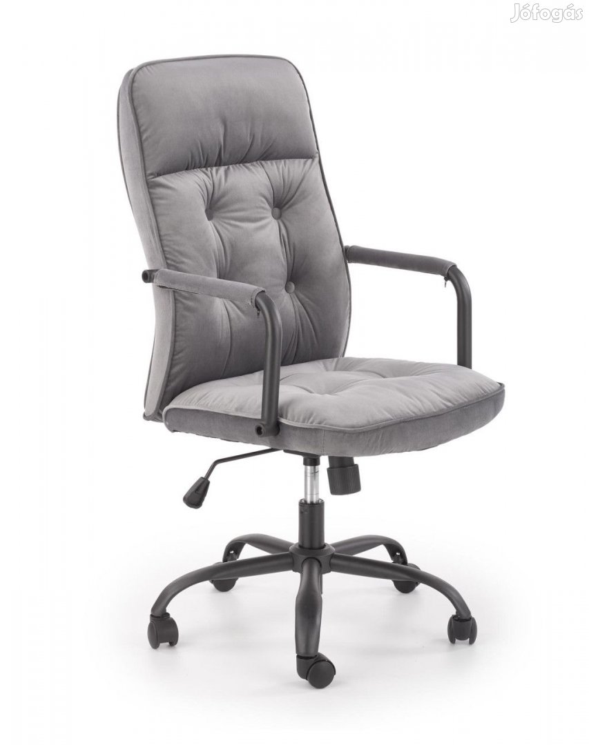 A forgószék szövetből készült szürke színváltozatban, a termékfotókonn látható kivitelben rendelhető.