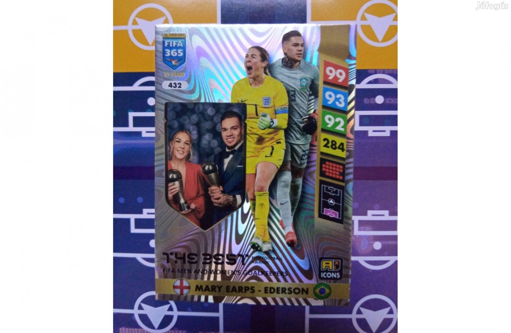 Eladó a képen látható Panini FIFA 365 Adrenalyn 2025 Mary Earps Ederson (Manchester City) 432-s sorszámú Icon Legend kártya.