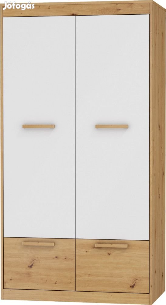Gardróbszekrény 4 ajtóval, felül polccal és vállfatartóval, artisan tölgy és fényes fehér színben. További információkért kattintson ide: