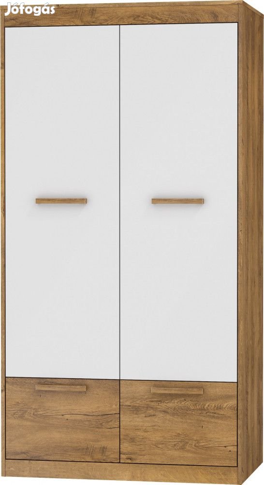 Gardróbszekrény 4 ajtóval, felül polccal és vállfatartóval, burgundy tölgy és fényes fehér színben. További információkért kattintson ide: