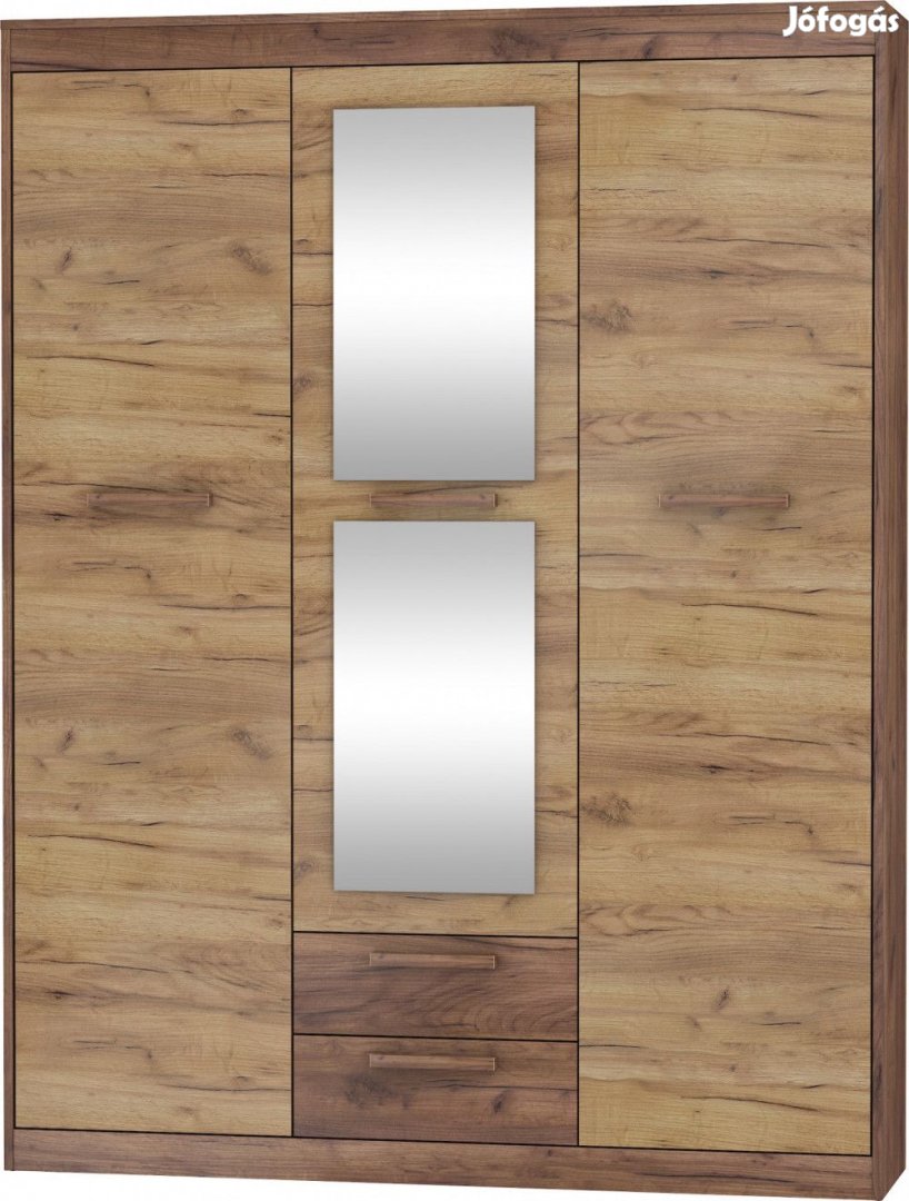 Gardróbszekrény 3 ajtóval, 2 fiókkal, osztott belsővel, a két szélső ajtó mögött felül polccal és vállfatartóval, középen végig polcokkal, a középső ajtón tükrökkel, tobacco tölgy és arany tölgy színben. További információkért kattintson ide: