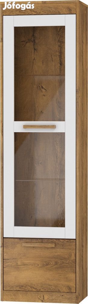 Felül 1-ajtós üveges vitrines, alul 1-ajtós lenyílós szekrény üvegpolcokkal, burgundy tölgy és fényes fehér színben. További információkért kattintson ide: