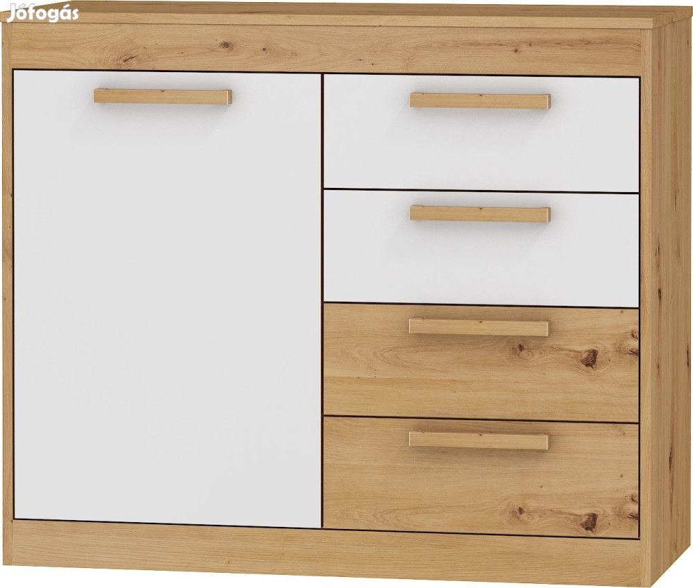 Komód 1 ajtóval, 4 fiókkal, az ajtó mögött polccal, artisan tölgy és fényes fehér színben. További információkért kattintson ide: