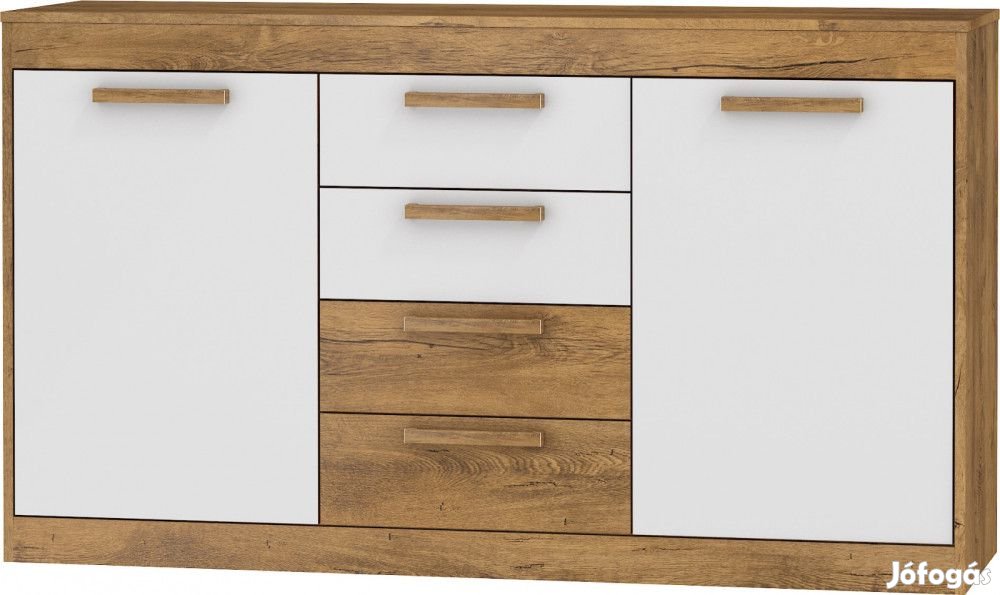 Komód 2 ajtóval, 4 fiókkal, az ajtók mögött polcokkal, burgundy tölgy és fényes fehér színben. További információkért kattintson ide: