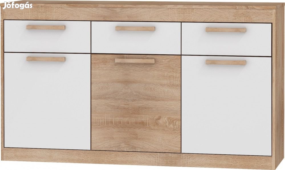 Komód 3 ajtóval, 3 fiókkal, az ajtók mögött polcokkal, világos sonoma tölgy és fényes fehér színben. További információkért kattintson ide: