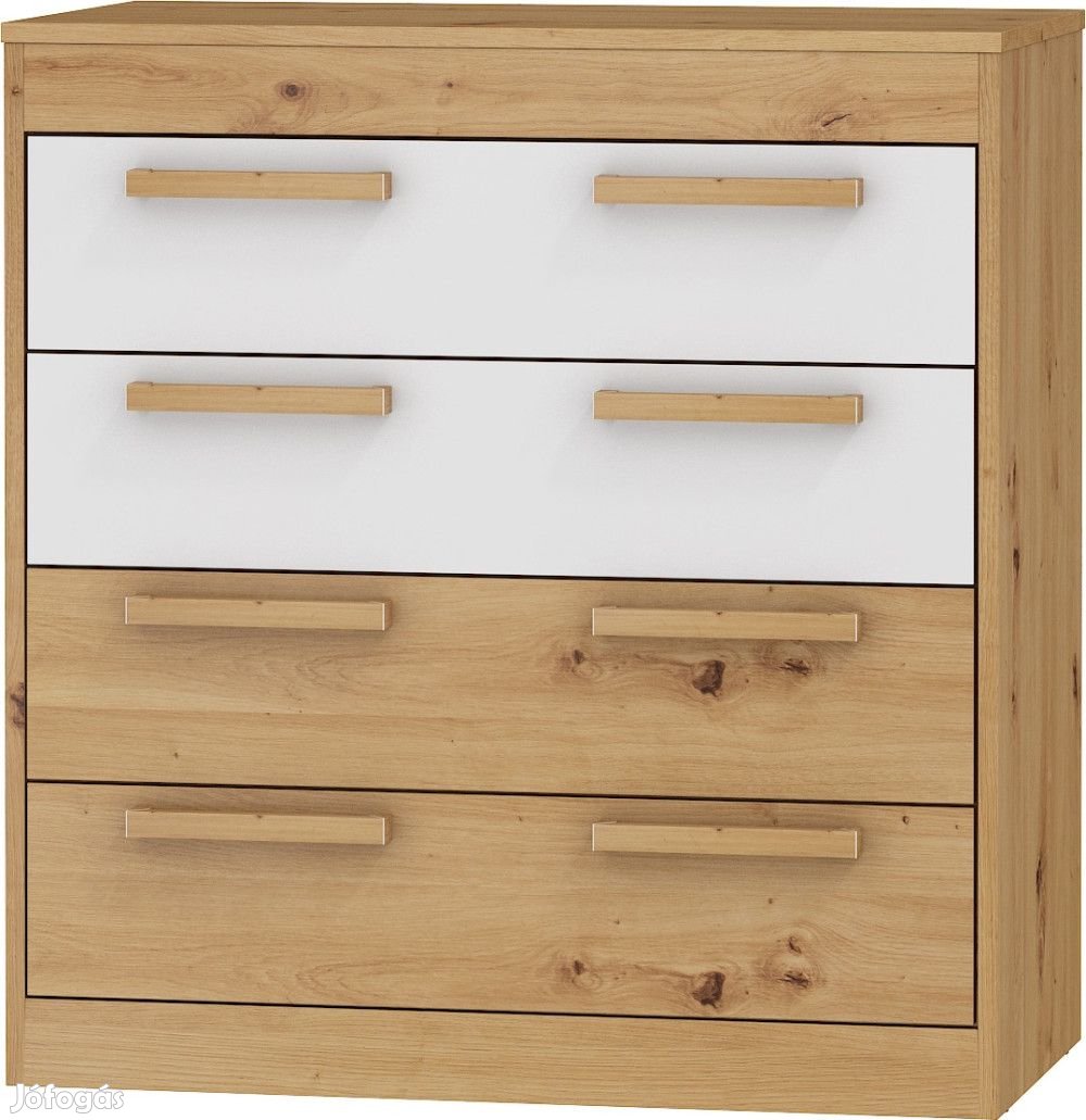 Komód 4 fiókkal artisan tölgy és fényes fehér színben. További információkért kattintson ide: