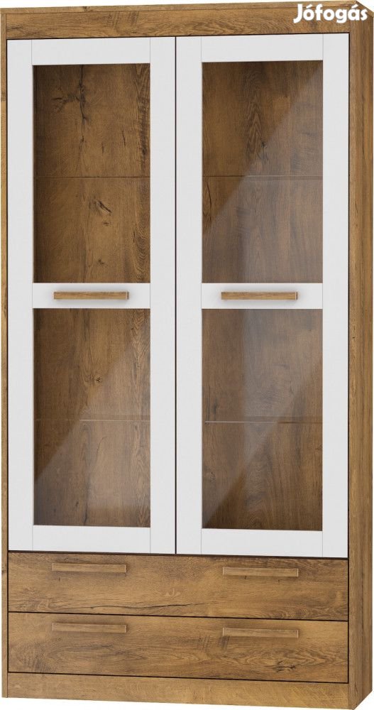 Felül 2-ajtós üveges vitrines, alul 2-fiókos szekrény üvegpolcokkal, burgundy tölgy és fényes fehér színben. További információkért kattintson ide: