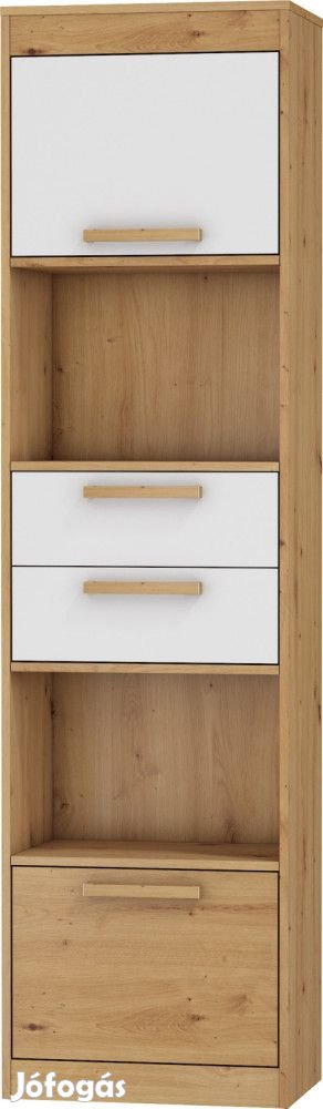 Könyvespolc 2 ajtóval, 2 fiókkal és nyitott polcokkal, artisan tölgy és fényes fehér színben. További információkért kattintson ide: