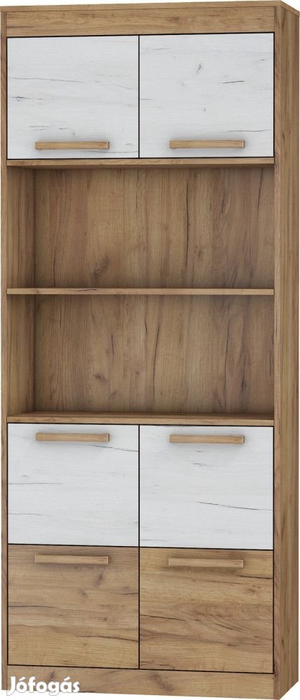 Könyvespolc 6 ajtóval és nyitott polcokkal, arany tölgy és fehér tölgy színben. További információkért kattintson ide: