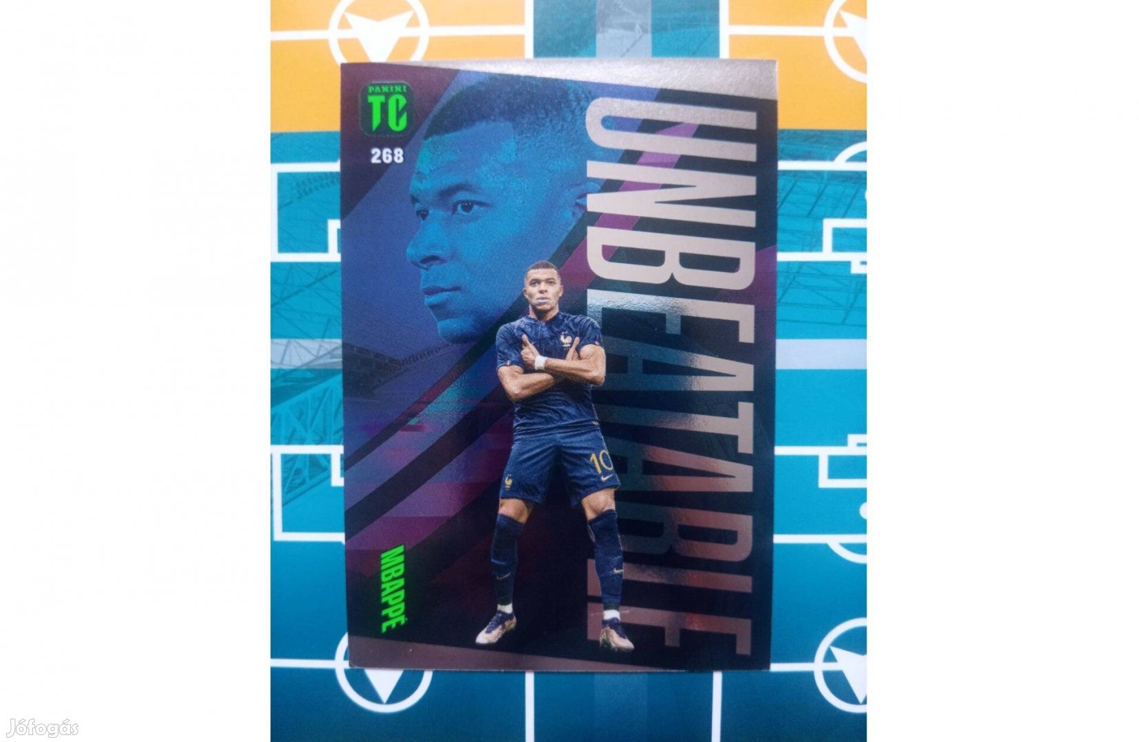 Eladó a képen látható Panini Top Class 2024 268-s sorszámú Kylian Mbappé (Franciaország) Unbeatable kártya.
