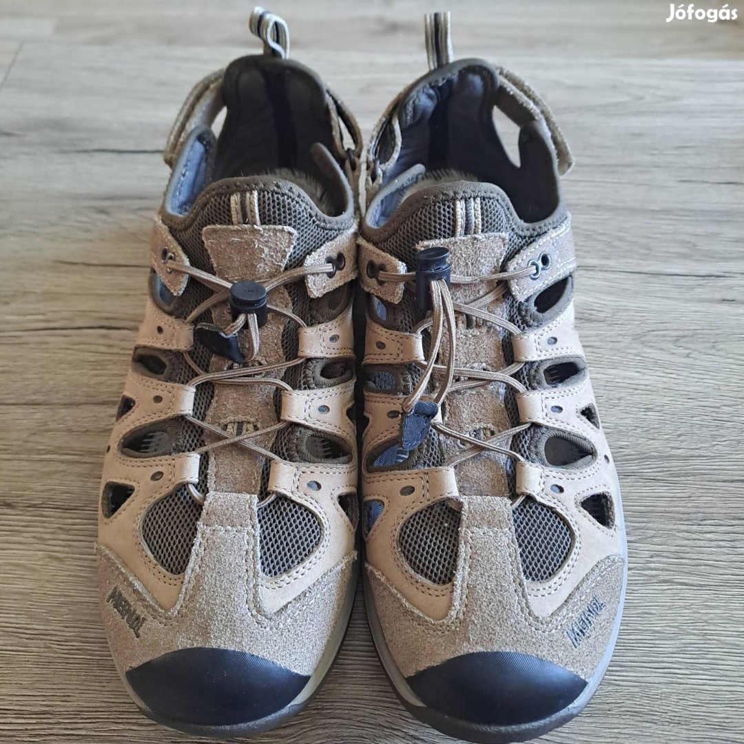 Eladó, egy Meindl márkájú, outdoor, túra szandál cipő, 44-es méretben. A szandál egyszer lett viselve, egy szafari alkalmával, azóta szekrény lakó. Kihasználatlanság miatt szeretném el adni. Sajnos a talpbetétet azt ott hagytam Afrikában. Belső talp mérete 28,5 cm-es.