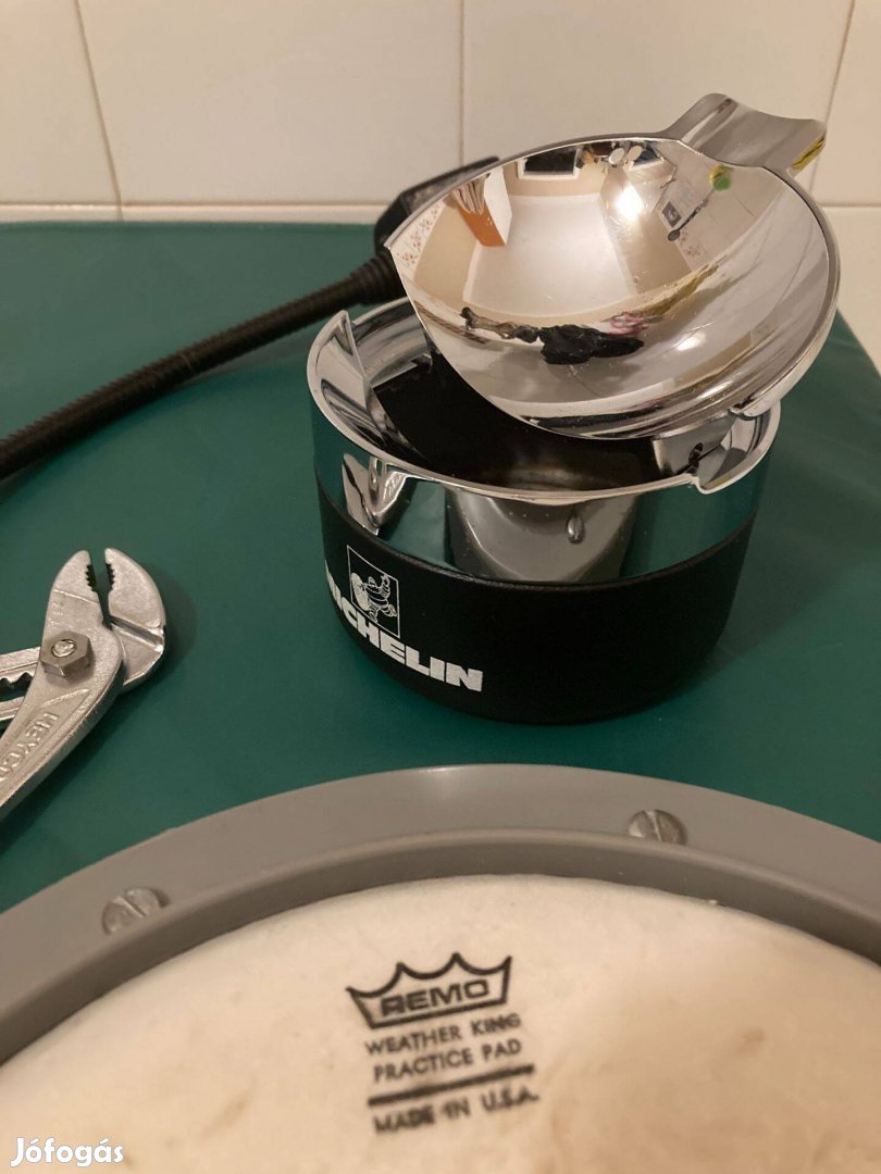 Minőségi márkás Nyugatnémet krómozott fém asztali hamutartó, Michelin logózott kivitel, gyűjteménybe, szalonba, műhelybe egyaránt mutatós darab! Krómozása, porfestése egyaránt ép. Normál használt, tisztított.