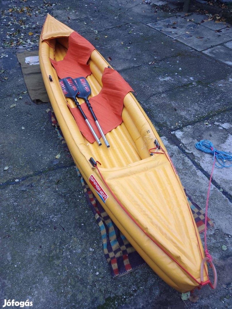 Megbízásból meghírdetett, minőségi masszív felfújható túrakenu kihasználatlansága okán eladó. Édes/sósvízre egyaránt, extrém körülmények között is biztonságos, vadvízí túrákhoz. Keveset használt csónak, pincében/garázsban tárolva, ápolva. Kifogástalan, javítástól mentes, foltmentes. Ár alatt. Fotó szerint, 2 db felfújható ülés betéttel, kéttollú evezővel. A csónak anyaga speciális gumírozott kordura szövet, némi karbantartás, odafigyelés mellett mondhatni örök darab. Személyes átvétel veszprémi címen lehetséges, előre egyeztetve. Köszönjük érdeklődését!