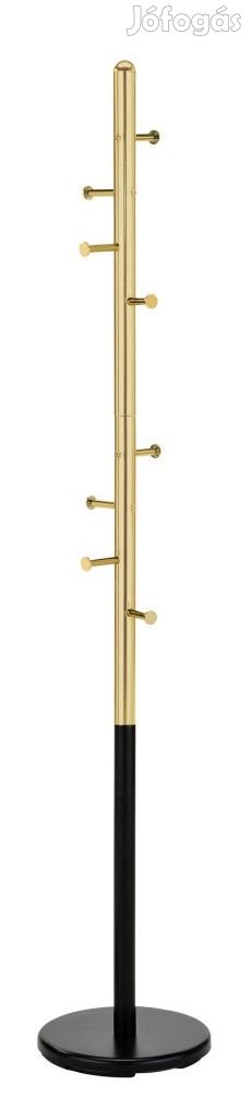 Por festett fém oszloppal és talppal készülő fogas, arany színű betéttel, felső résszel és akasztókkal.