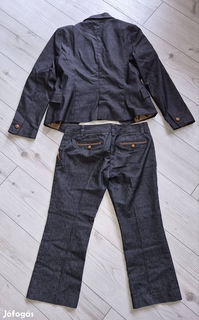 Zara márkájú női modern kosztüm, farmer, 40-es méretű, de csak S-nek felel meg! Mindenképpen próbálni kell! A nadrág nagyon csípő szabású és a hossza 3/4-es.