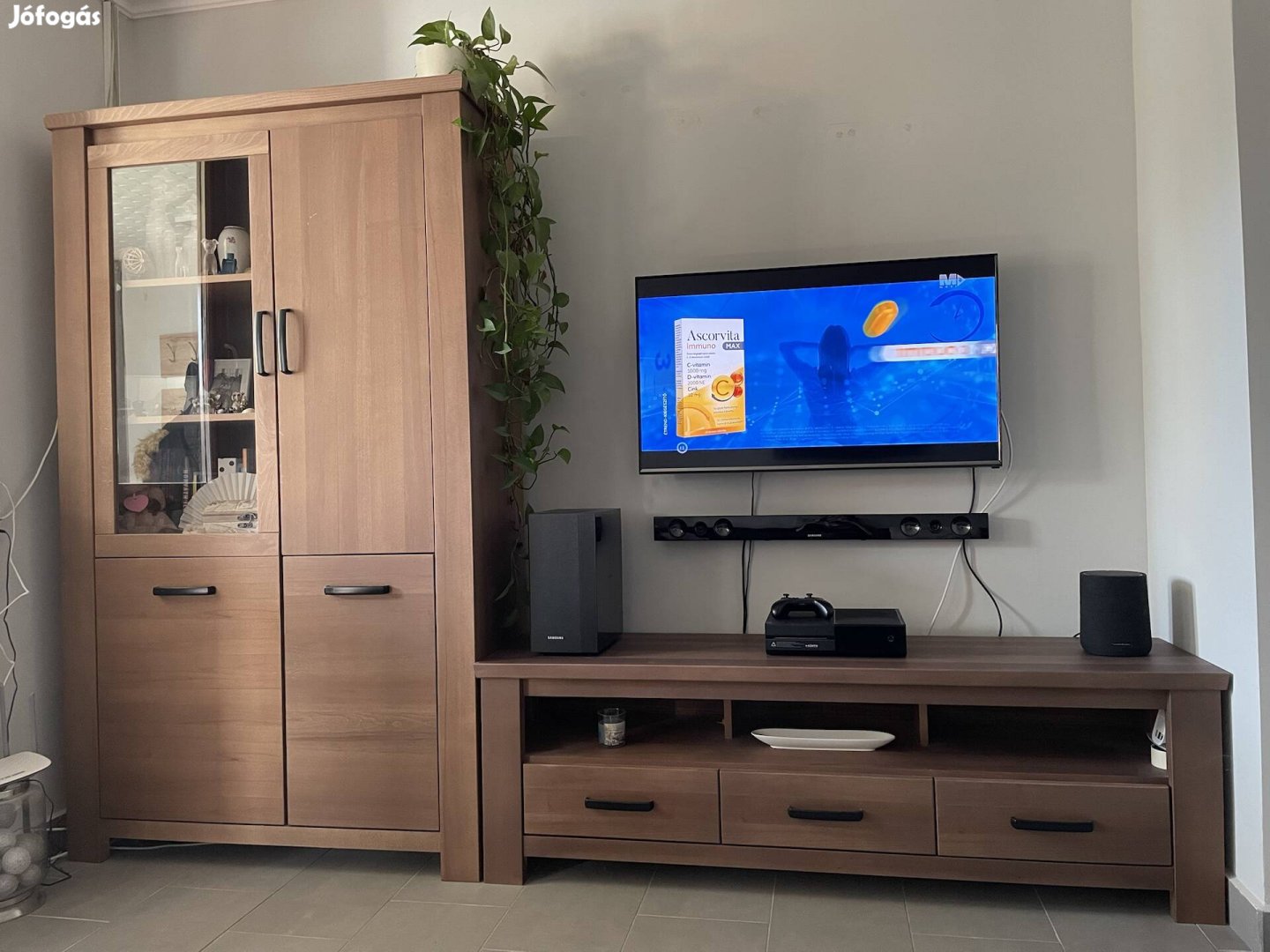 Vitrines szekrény polcozva, tv szekrény 3 fiókos.