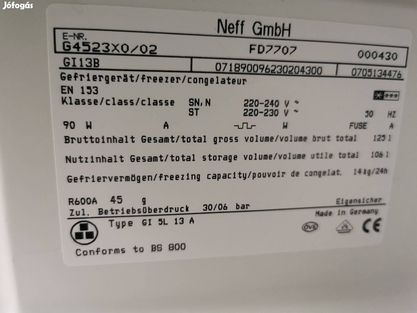 Eladó a képeken látható állapotú, tökéletesen üzemelő Neff (Siemens) 4 fiókos fagyasztószekrény 1 hónap garanciával!