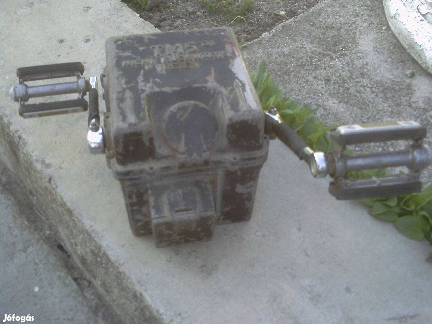 Eladó a képeken látható háborús német katonai 1943-as gyártású pedálgenerátor.TM5 típusú generátor,amely egy kerékpár szerű vázra volt szerelve és ez adta a rádió elektromos ellátását,miközben a katona tekerte.Kapocs tábláján korabeli jelzésekkel.
