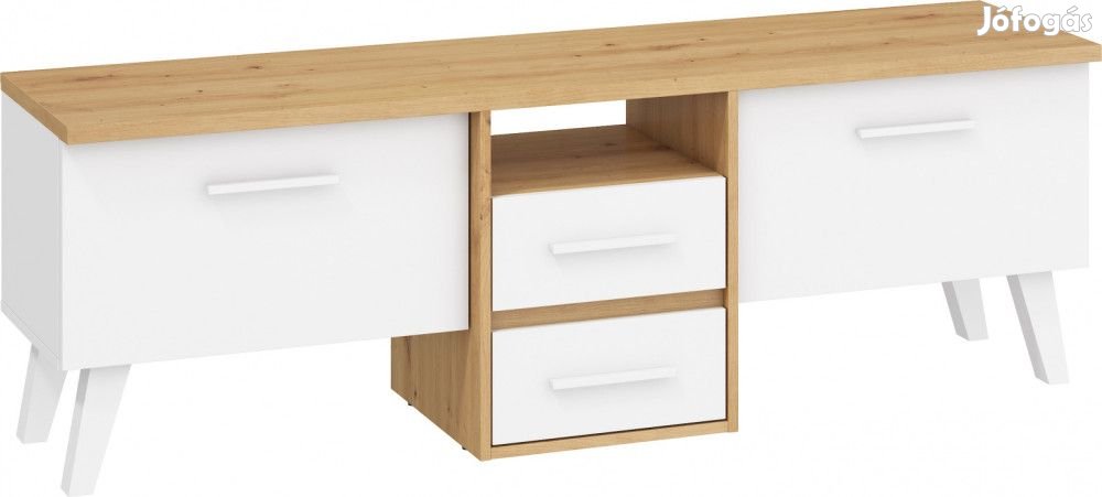 TV-állvány 2 ajtóval, 2 fiókkal, és nyitott polccal, artisan tölgy és fehér színben. További információkért kattintson ide: